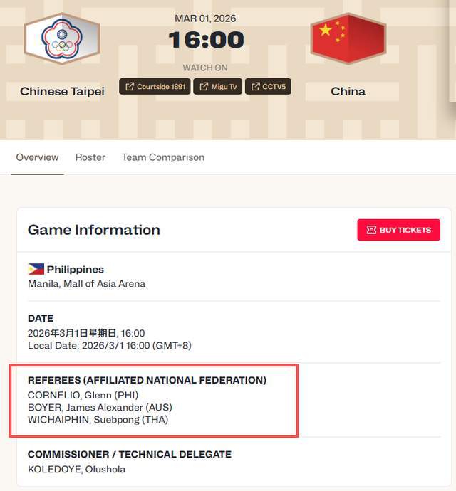 当争议裁判瑞安·琼斯、普里达孟米、梁俊容被全网拉黑,国际篮联终于在3月1日官宣:中国男篮对阵中国台北的裁判组,换人了。